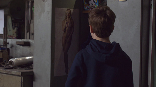 Udo hat sich mit dem Vater verabredet, damit er ihn zum Fußballtraining fährt. Während er den Vater in der weiträumigen Werkstatt sucht, kommt er an seinem offenen Spind vorbei. Darin hängt das Poster eines wenig bekleideten Pin-up-Girls. Ein Arbeitskollege macht einen sexualisierten Scherz, bevor der Vater eingreift.